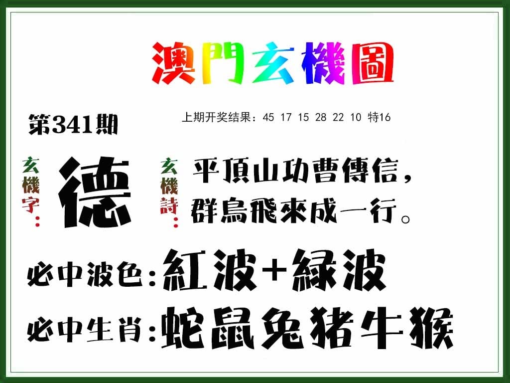 | 341期: ⑥肖 | 蛇猴鸡牛兔虎 | ????中 |